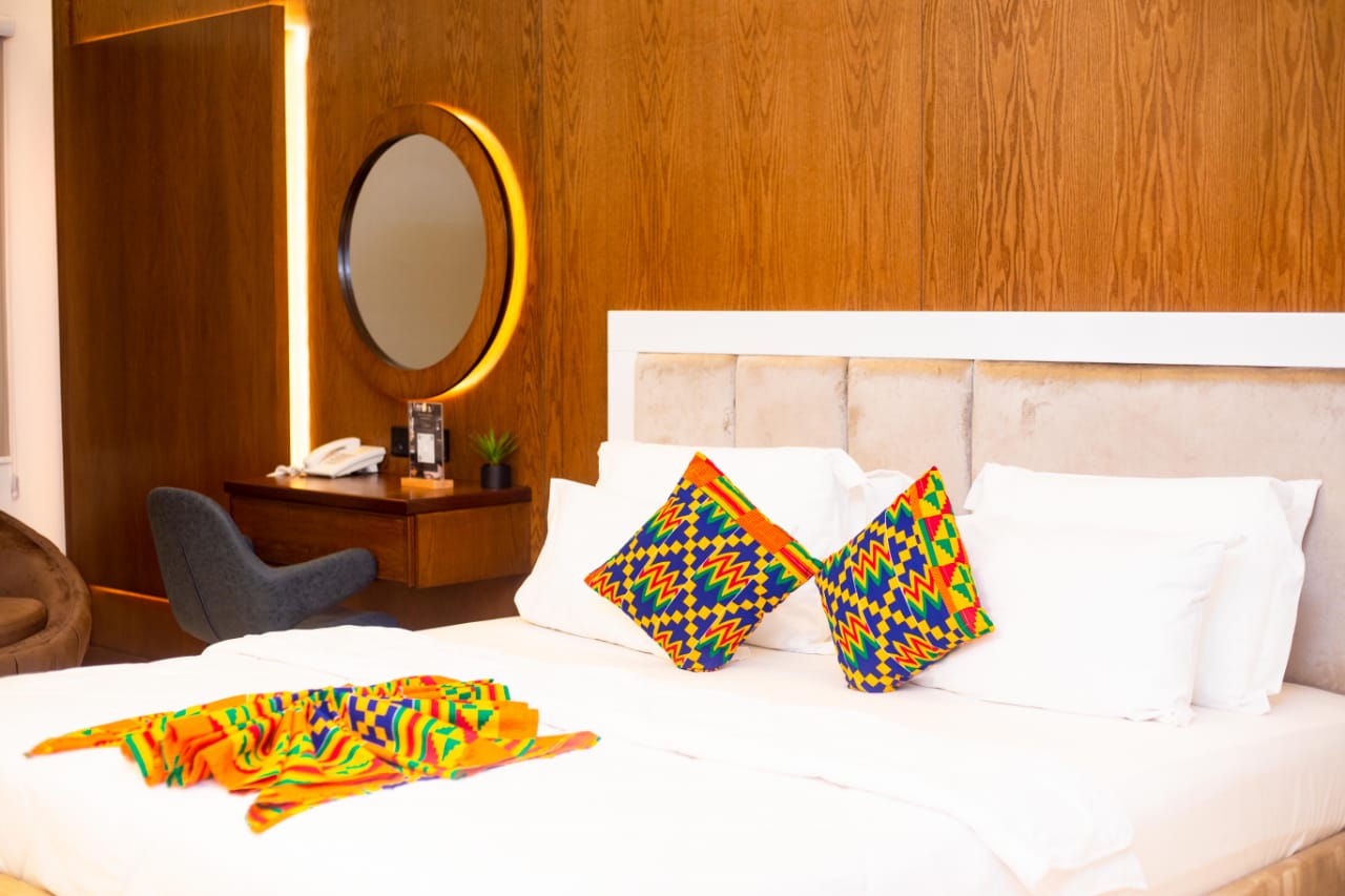 Experience comfort and elegance in our Standard Room, thoughtfully designed for relaxation and convenience. Each room features a plush queen-sized bed, air conditioning, DSTV, complimentary Wi-Fi, a flat-screen TV, and a modern bathroom. Guests enjoy a complimentary breakfast each morning, crafted with care from our restaurant’s finest selections. Our friendly and professional staff are always on hand to ensure every detail of your stay is seamless and satisfying. Perfect for solo travelers, couples, or business guests seeking a cozy retreat at an affordable rate all wrapped in the signature TCHETCHE touch of luxury.